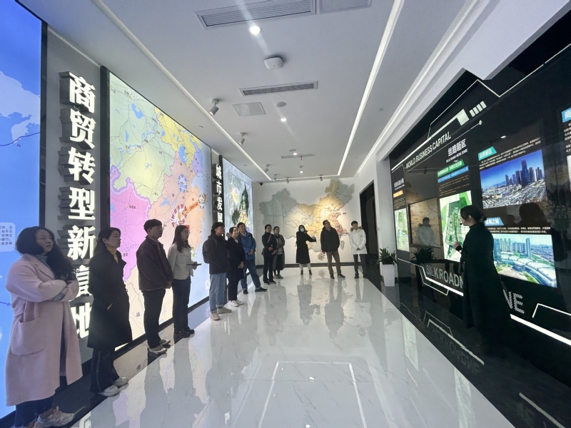 教师实践团的第一站来到了义乌丝路金融小镇,小镇产业定位以金融、贸易为主导,以贸易金融为主要特色,围绕义乌国际贸易提供金融服务。在丝路金融小镇会客厅,跟随讲解员的带领,实践团队学习了解小镇的基本情况、建设成效以及未来展望,感受义乌这座“无中生有”城市的蓬勃发展。