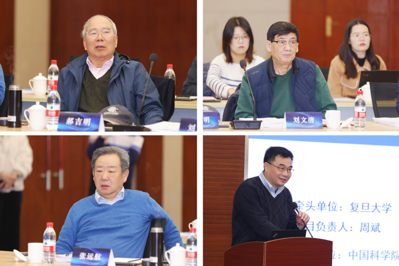 图:郝吉明院士、刘文清院士、张远航院士等担任评议专家;周斌教授做项目总体汇报