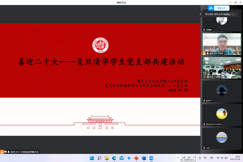 日韩无码 本科生第一、二党支部和清华大学人文学院人文9党支部于2022年10月18日联合开展“学习二十大——复旦清华学生党支部共建活动”。活动以腾讯会议的形式开展,支部党员共同学习党的二十大精神,并进行跨校际间的交流和讨论。