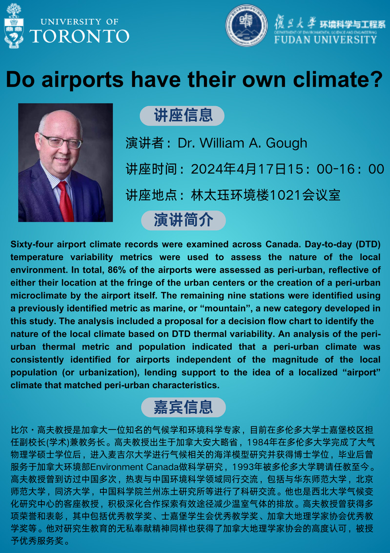 【学术报告】Do airports have their own climate?