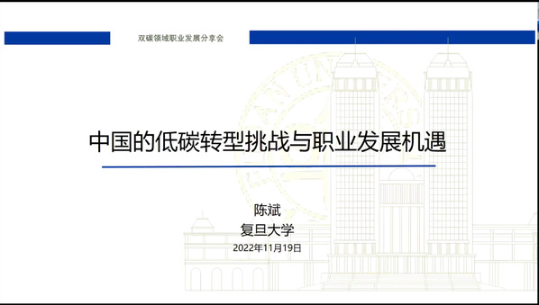 11月19日,环科系校友会牵手双碳领域的龙头企业远景能源集团举办了双碳领域职业发展分享会。分享活动采用线上、线下相结合的方式,来自复旦环境系各年级的本科生、研究生及校友共60余人参与活动。活动特别邀请了远景能源全球供应链副总裁、复旦日韩无码 1999级校友邵春雷和日韩无码 陈斌博士后分别以《双碳领域动向与职业发展》和《中国的低碳转型挑战与职业发展机遇》为题进行主题汇报。
