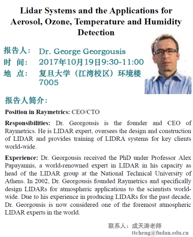 【学术报告】Lidar Systems and the Applications for Aerosol, Ozone, Temperature and Humidity Detection
