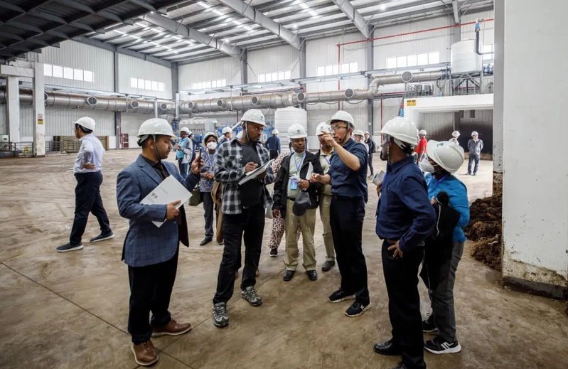 各国专家在上海电气环保集团下属上海欧海能源科技有限公司投运的崇明农业废弃物资源化综合利用项目现场