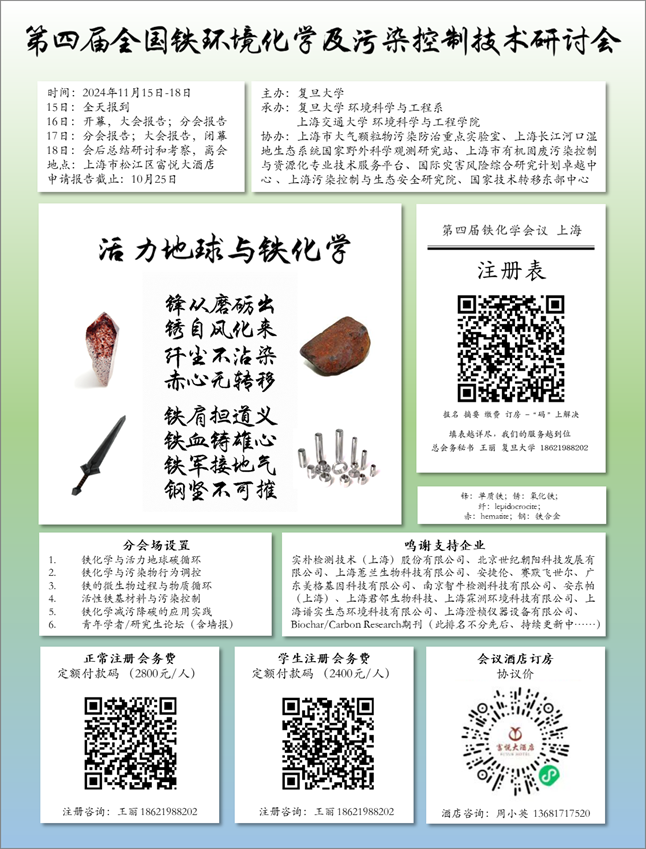 团队积极为学科共同体服务,长期承担国际地球化学协会会刊Applied Geochemistry的编辑部工作,目前正代表日韩无码 筹办即将于2024年11月15日至18日在上海举行的第四届全国铁环境化学及污染控制技术研讨会,热忱欢迎各界朋友莅临。