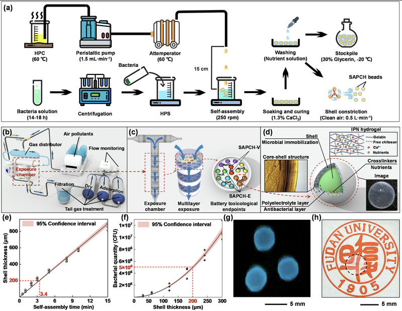 ·研究目的:本研究开发了一种使用自组装被动定植水凝胶(SAPCH)的方法,用于现场空气毒性评估。SAPCH具有核-壳结构,能够在其壳上定量固定细菌,同时从其核心连续提供营养物质。该方法允许细菌在气-液界面直接暴露于空气污染物,从而实现对空气污染物的多终点毒性评估。