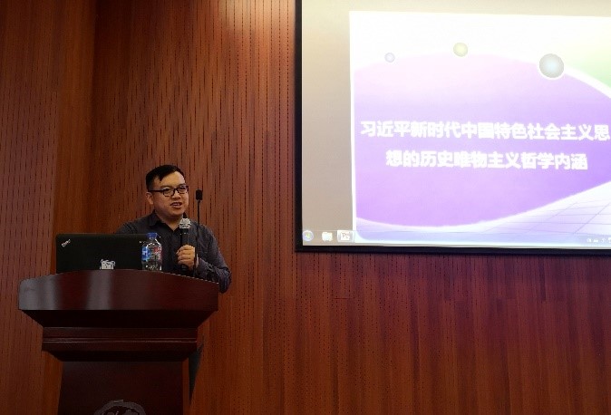 10月8日下午,分党委邀请了我校哲学学院鲁绍臣老师做了《习近平新时代中国特色社会主义思想的历史唯物主义哲学内涵》的讲座,要求环境系全体教师党员参加。鲁老师从哲学的角度对习近平新时代中国特色社会主义思想进行解读,提出习近平新时代中国特色社会主义思想从更高水平上奠定了历史唯物主义的指导地位,完成了对历史唯心主义思想根本超越,是对马克思思想的继承与发展,加深了党员同志对理论的理解。