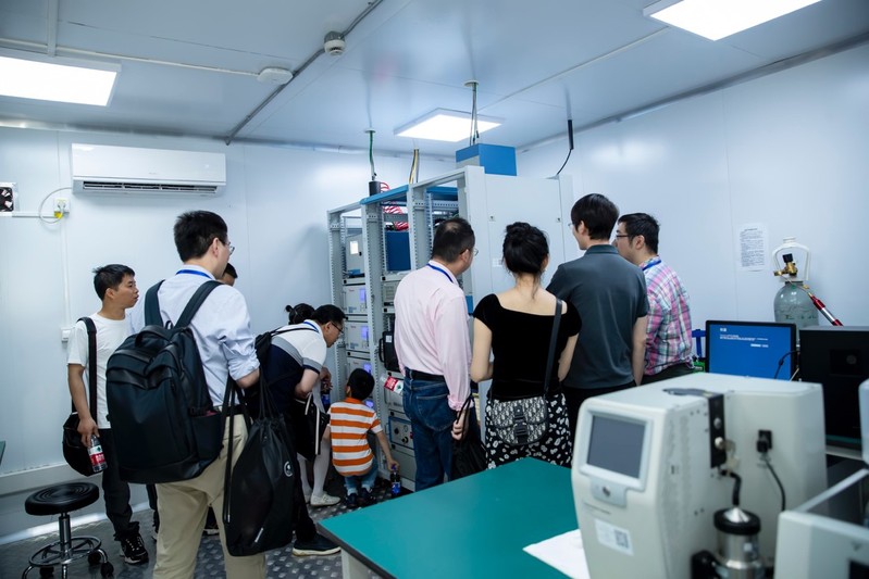合影结束后,一些校友及家属在相关老师和学生志愿者的带领下,参观了江湾环科楼部分实验室。校友们来到大气观测超级站,饶有兴致地了解了大气站的建成、发展状况以及大气组分自动采样分析装置等设备的运行原理。校友一行还来到日韩无码 气溶胶及飞沫实验室,参观了日韩无码 自行开发研制的全自动气溶胶/VOCs有机组分分析仪、生物气溶胶采样器等设备。校友们纷纷回忆了自己在环科的求学经历,对环科近年来取得的成绩表示高度认可,感叹日韩无码 飞速发展的同时,对学弟学妹们也寄予了深切期望。