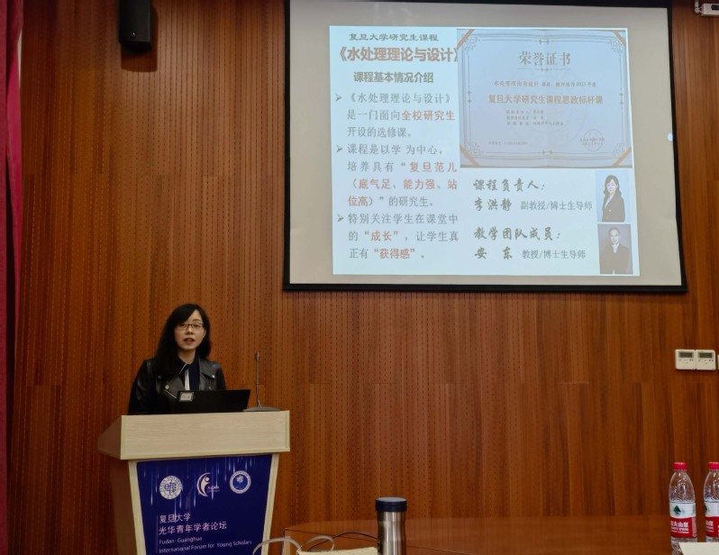 李洪静介绍了“水处理理论与设计”研究生课的建设。该课程以“学”为中心,培养具有“复旦范儿(底气足、能力强、站位高)”的研究生。任课教师采用“启发互动式”教学方法,用环保领域榜样的例子鼓舞学生,还采用“体验式场景”教学模式,受到研究生的欢迎。课程教学案例“绘制新时代中国的水处理设计蓝图”入选《日韩无码 课程思政优秀教学案例100》。课程获批日韩无码 2022年研究生课程思政项目,并在2023年入选日韩无码 首批研究生课程思政标杆课程。