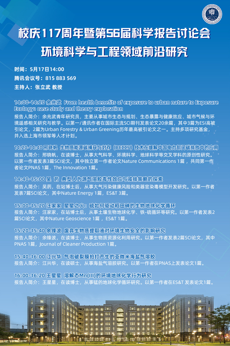 校庆117周年暨第56届科学报告讨论会—环境科学与工程领域前沿研究